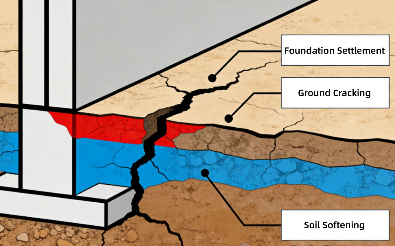 Coastal facilities face unique geological risks, primarily due to soft soil foundations (mucky soil or hydraulic fill) and low bearing capacity. Within a few years of operation, these sites often experience: